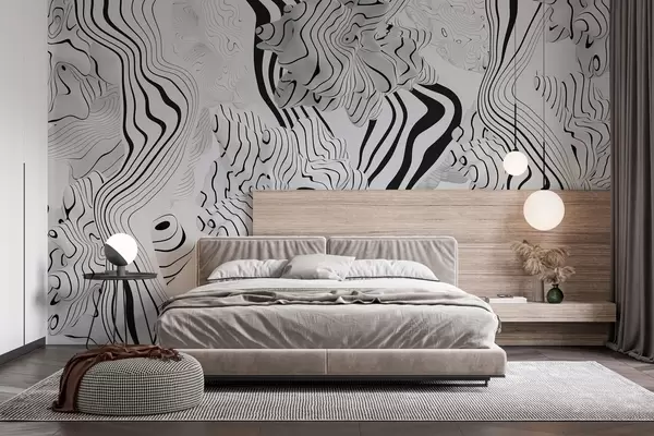 Fotomurales formas orgánicas abstractas en estilo 3D en tonos blancos y grises con rayas negras Nr. w04627