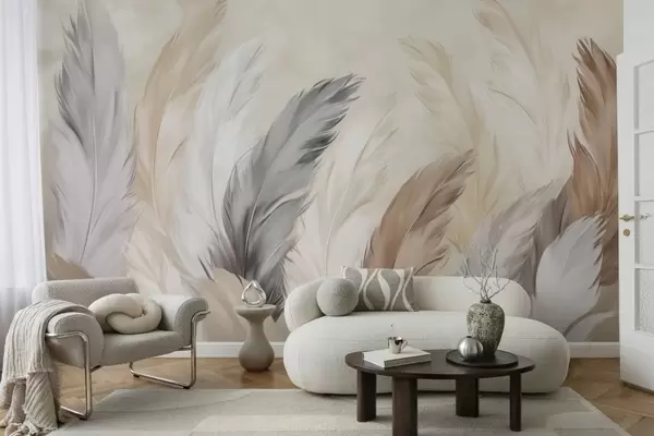 Fotomurales Plumas suaves y esponjosas en una cálida paleta de colores neutros Nr. w04736