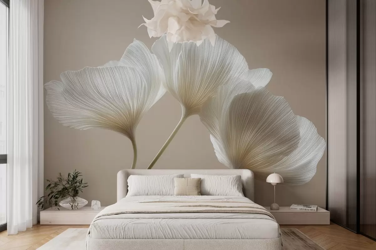 Fotomurales tres delicadas flores sobre un fondo beige Nr. w04810