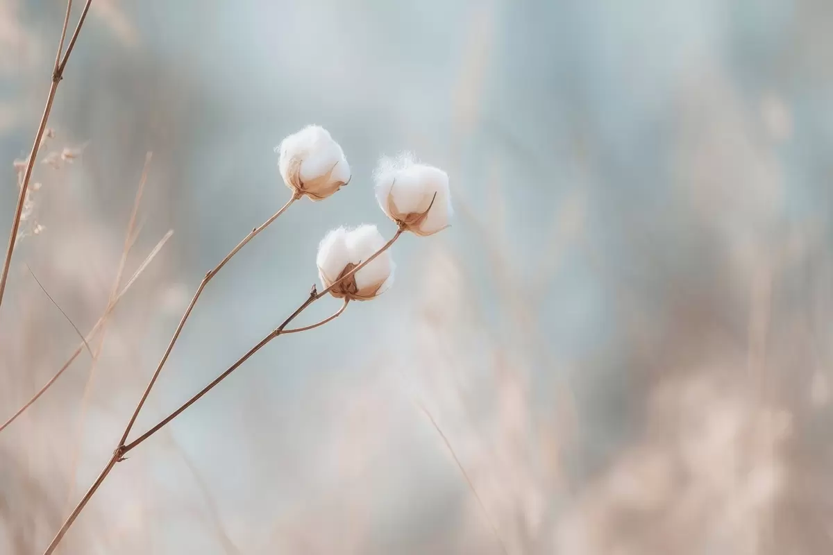 Fotomurales Tres flores de algodón sobre un fondo borroso. Nr. w04820