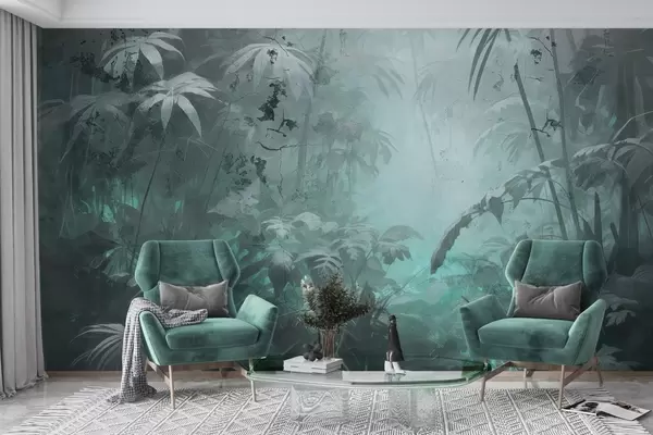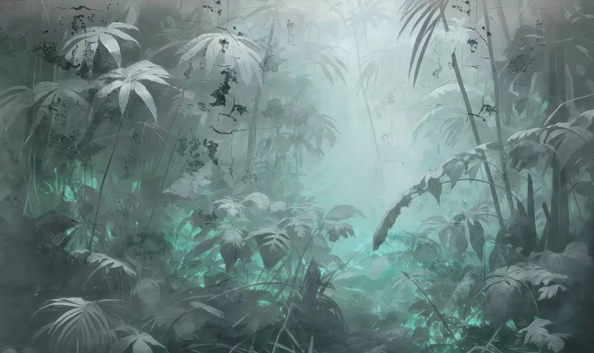 Fotomurales Selva pintada detrás de un muro de hormigón grunge Nr. w04833v1