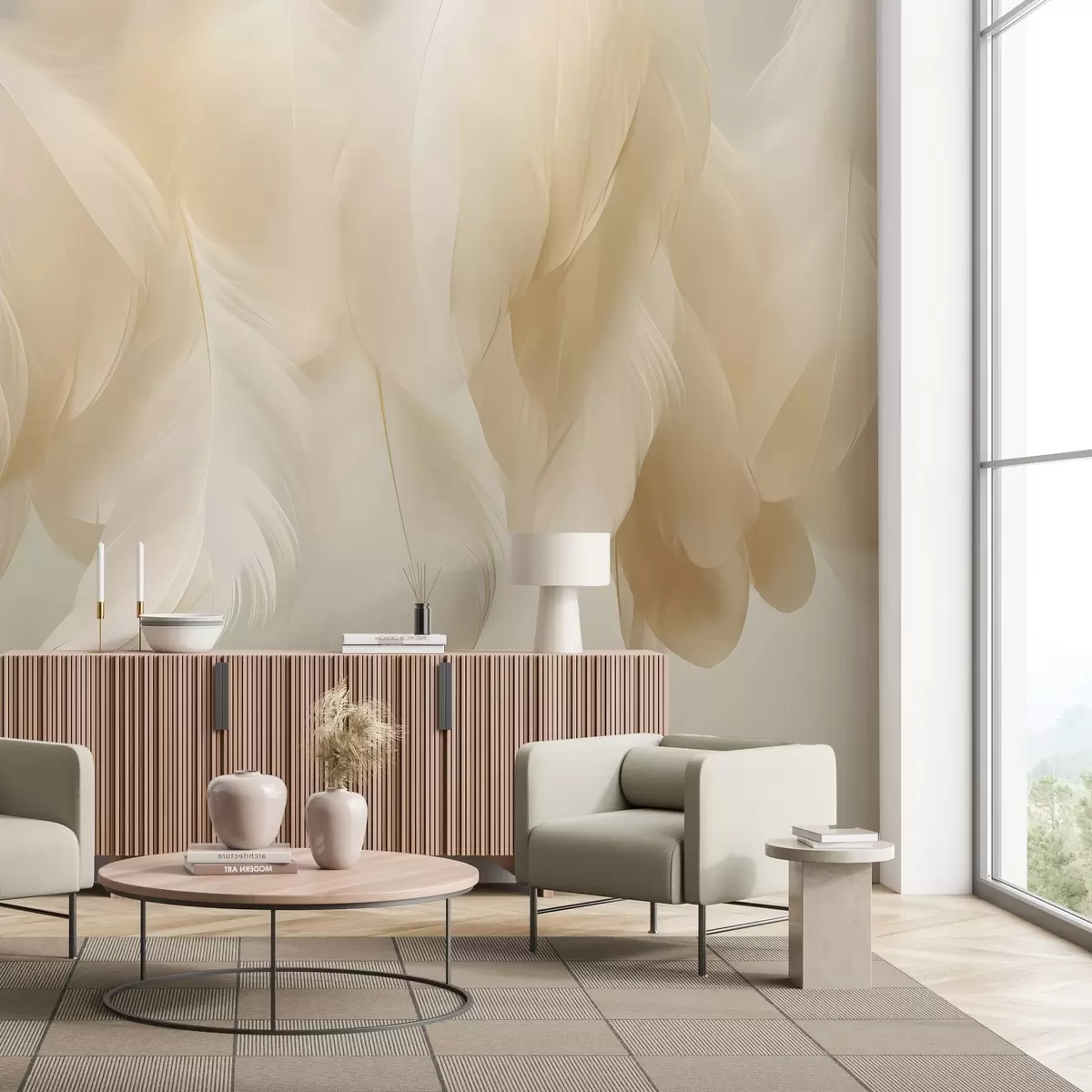 Fotomurales Plumas colgantes exuberantes y delicadas en tonos relajantes. Nr. w04842
