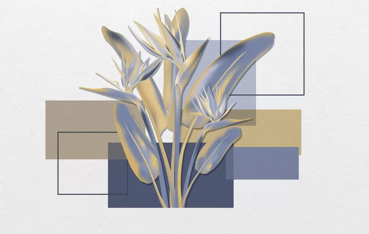 Fotomurales Strelitzia y geometría Nr. w04949v1