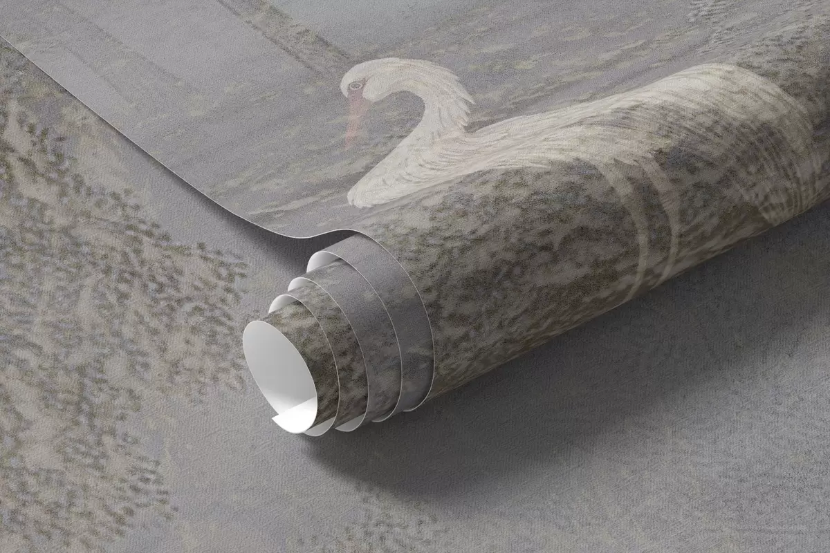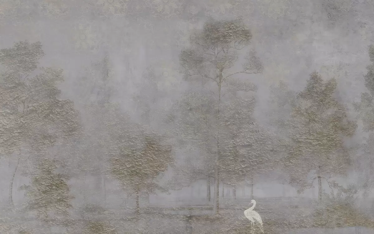 Fotomurales Bosque brumoso con una garza blanca y textura suave. Nr. w04953