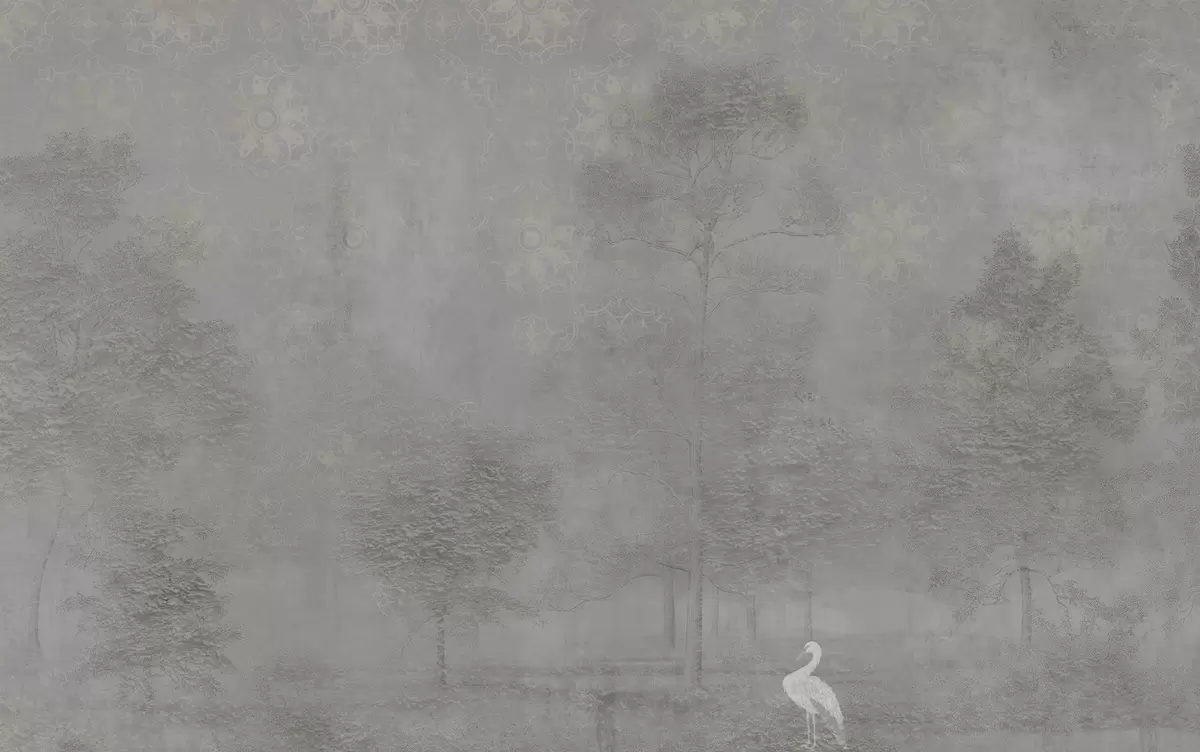 Fotomurales Bosque ligero y brumoso con una garza en tonos grises fríos. Nr. w04953v2