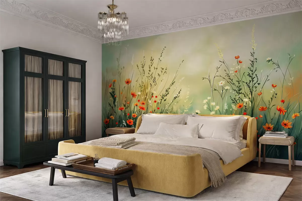 Fotomurales Flores y hierbas del prado en un estilo pictórico suave. Nr. w05015