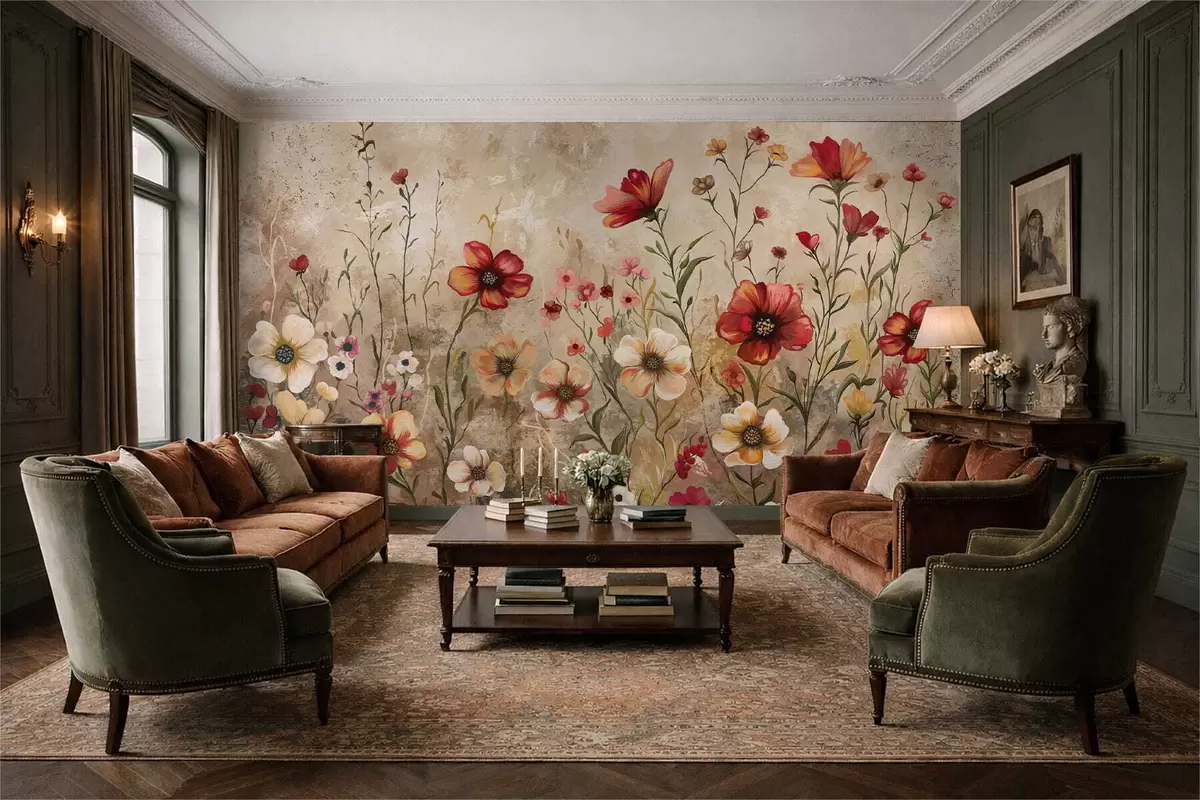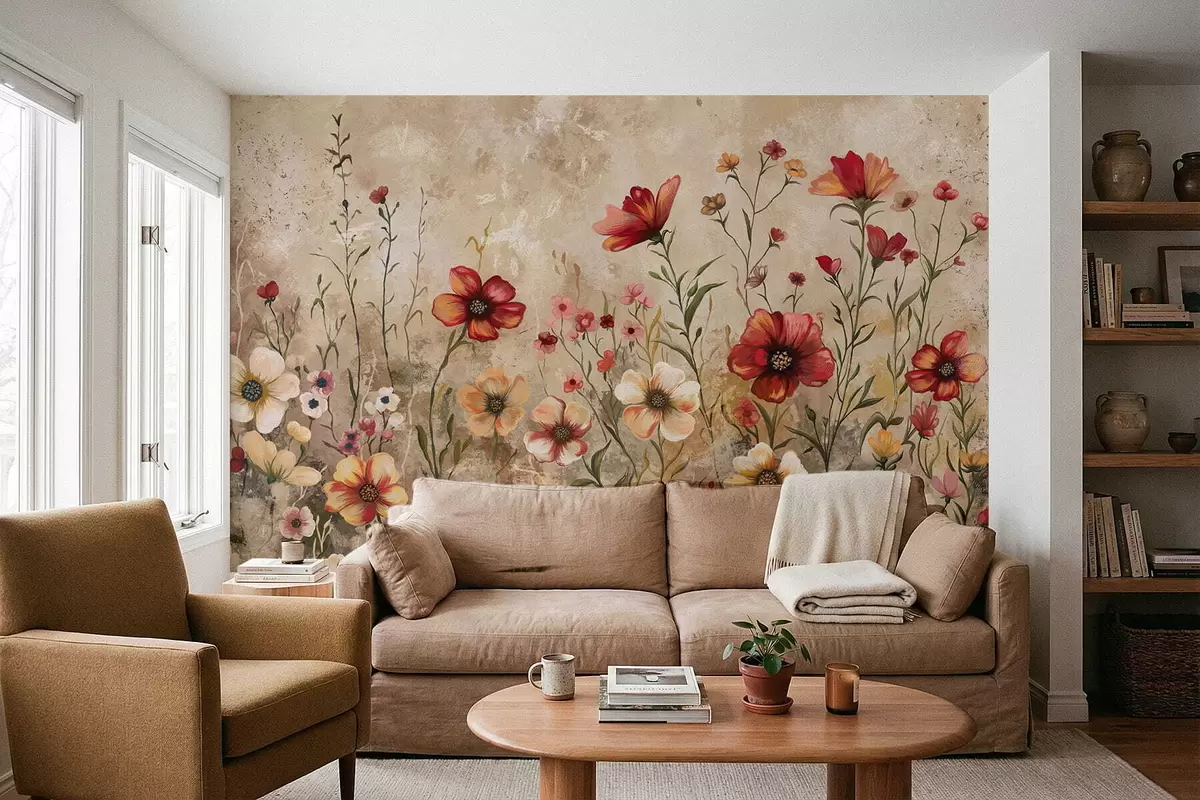 Fotomurales Composición floral con fondo texturizado en tonos cálidos Nr. w05016