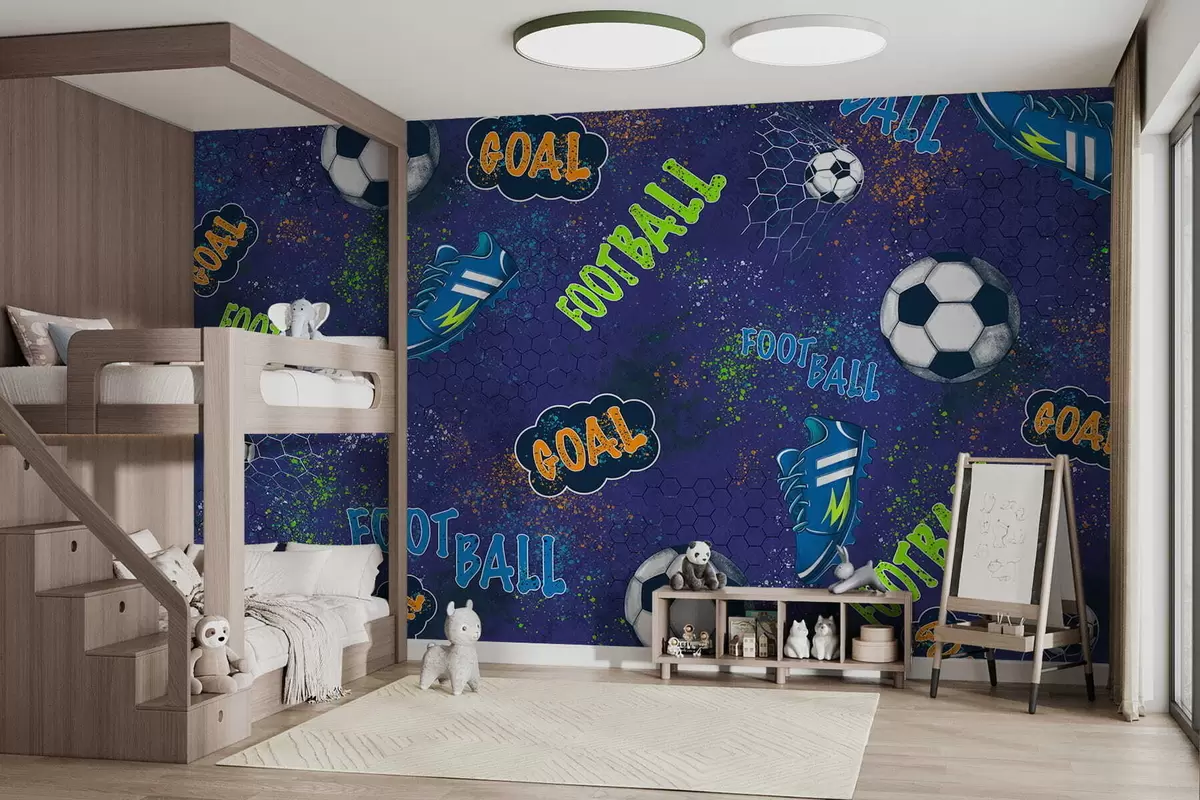 Fotomurales Patrón de fútbol infantil en tonos azul oscuro Nr. w05037v3