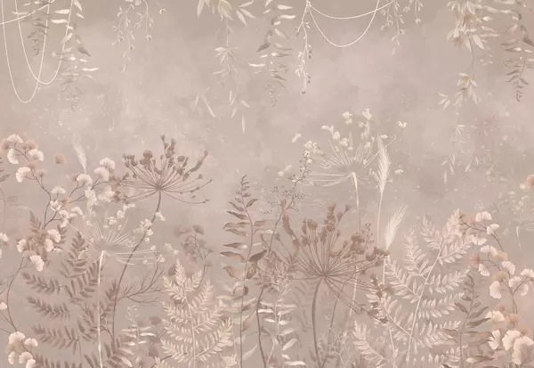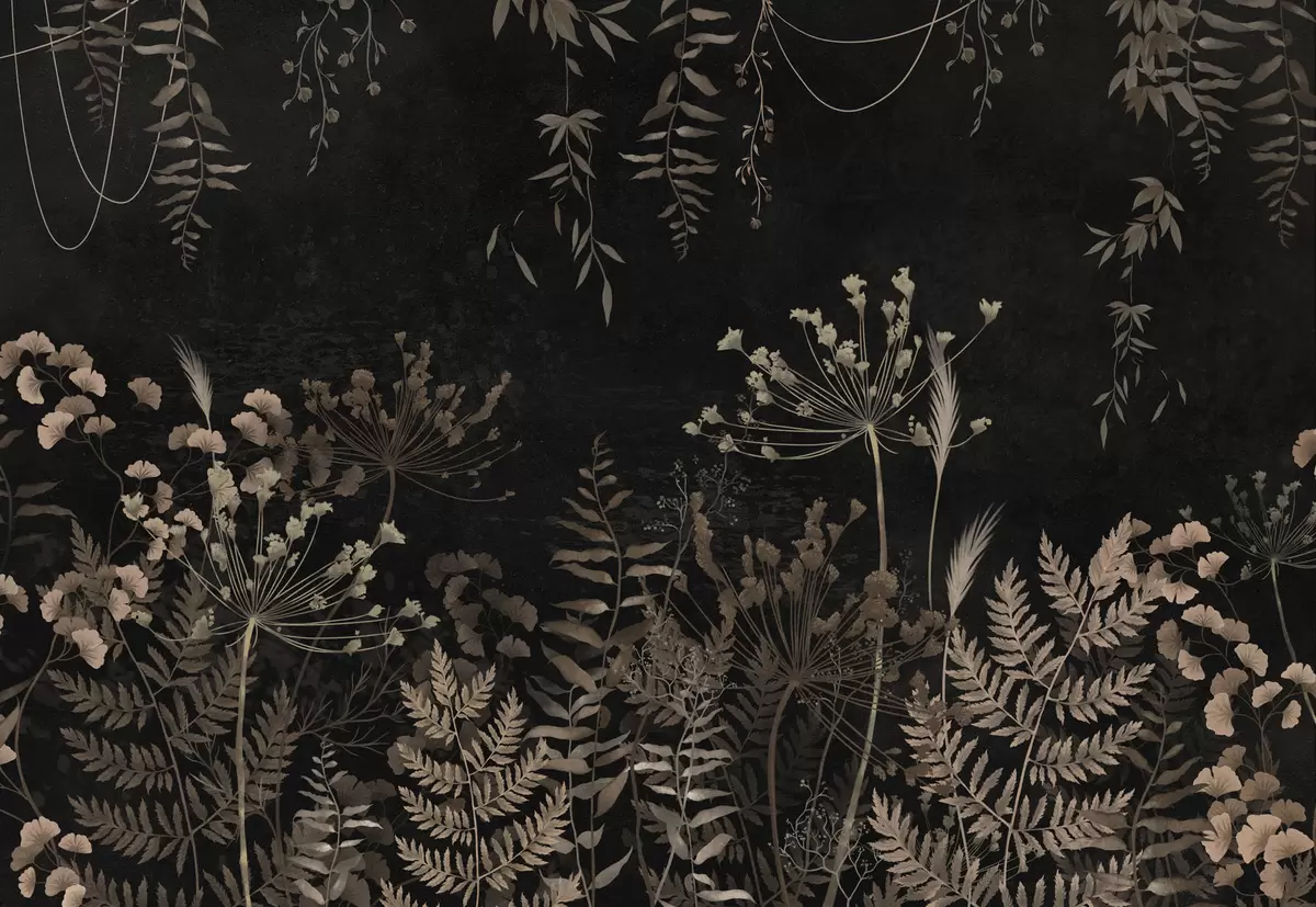 Fotomurales Diseño botánico oscuro con flores y hojas. Nr. w05092