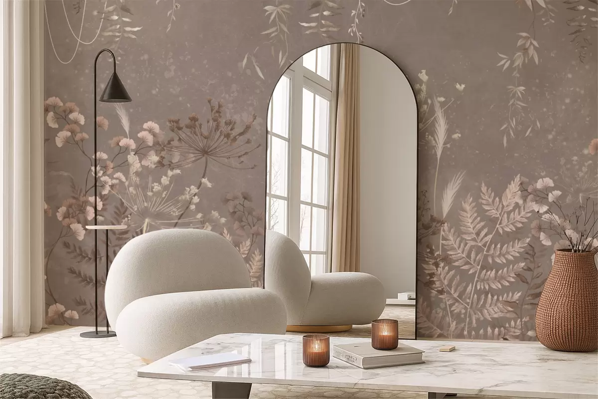 Fotomurales Diseño botánico ligero con flores y hojas. Nr. w05092v1