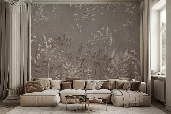 Fotomurales Diseño botánico ligero con flores y hojas. Nr. w05092v1