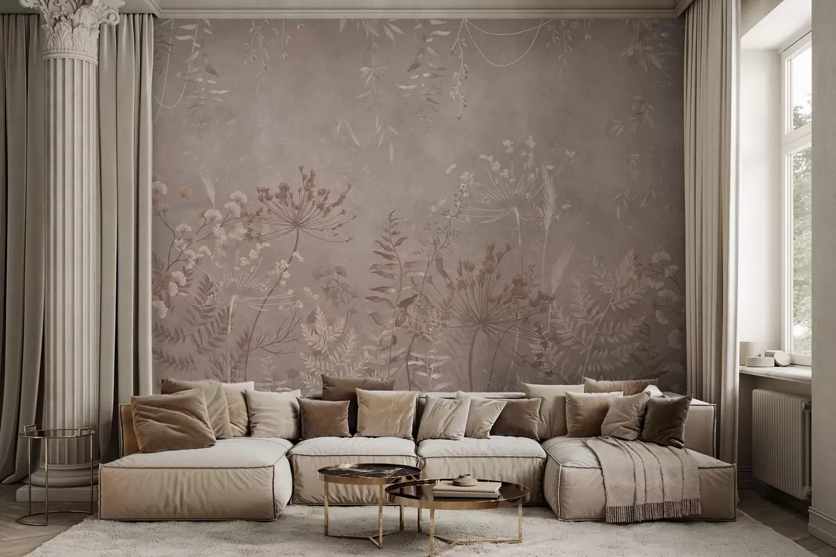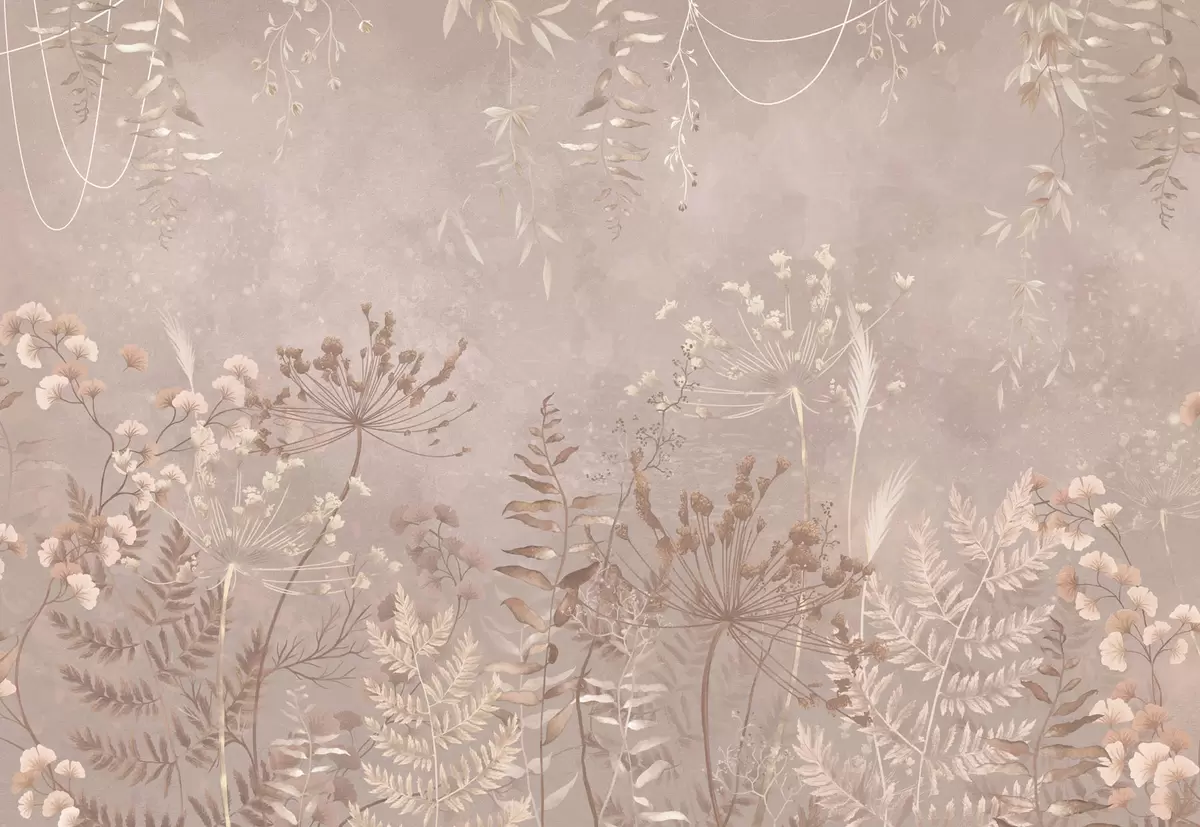 Fotomurales Motivo botánico en beige suave con flores silvestres. Nr. w05092v2