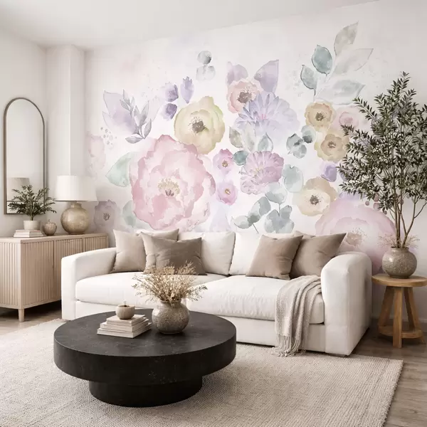 Fotomurales Composición en acuarela suave con flores y hojas Nr. w05093