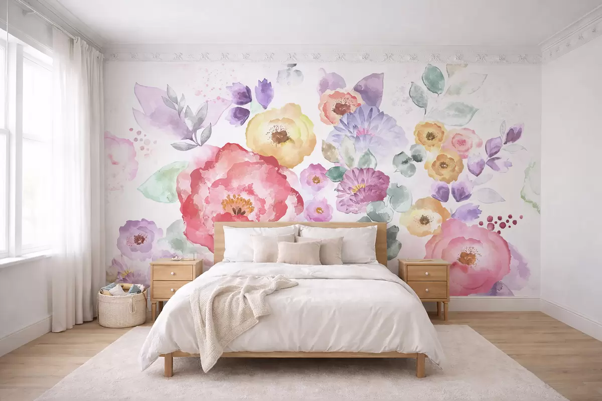 Fotomurales Flores en acuarela pastel sobre fondo claro Nr. w05093v1