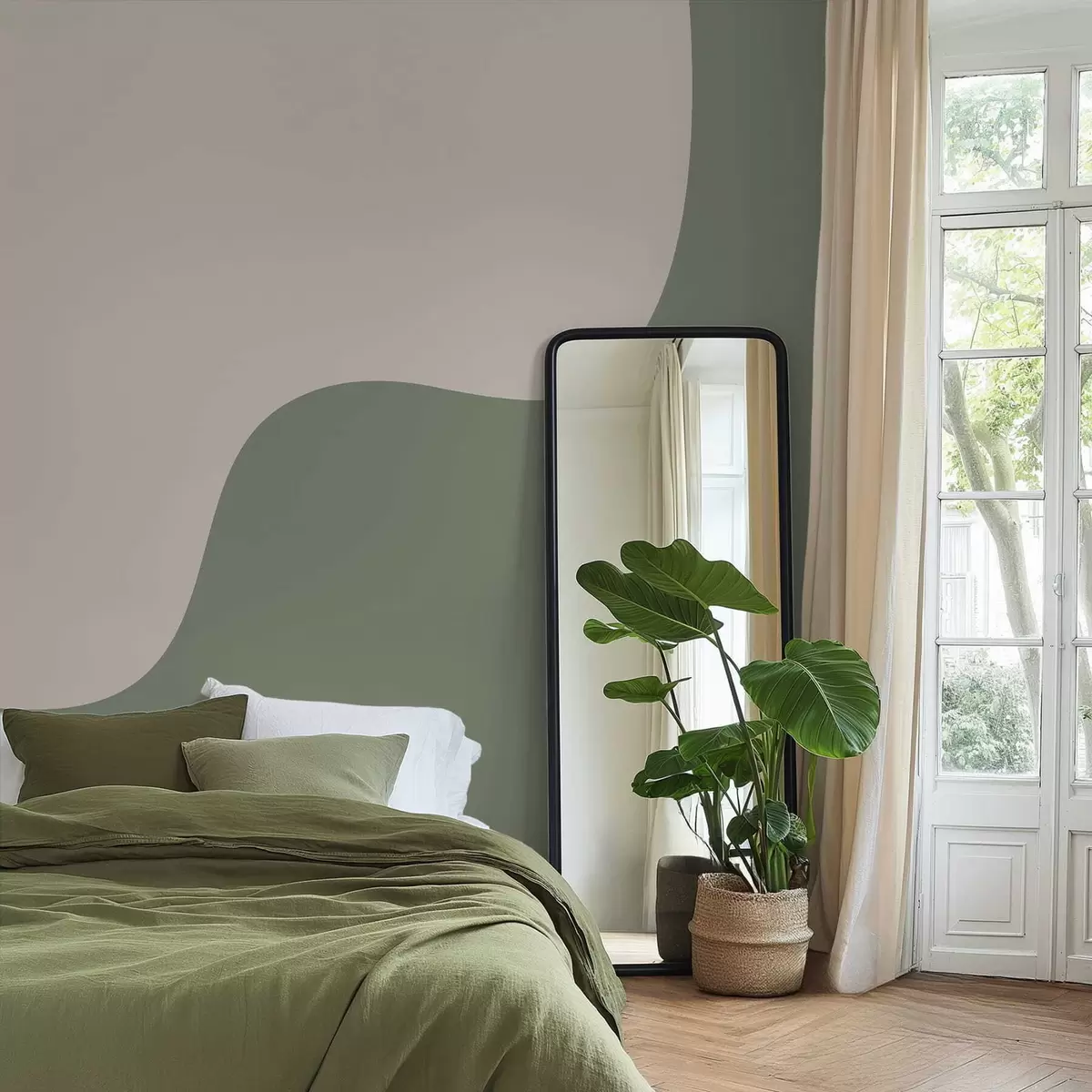 Fotomurales Formas abstractas suaves en tonos beige claro y verde. Nr. w05097