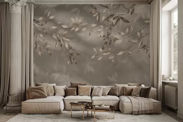 Fotomurales Delicadas ramas frondosas en tonos beige sobre un fondo claro. Nr. w05113v2
