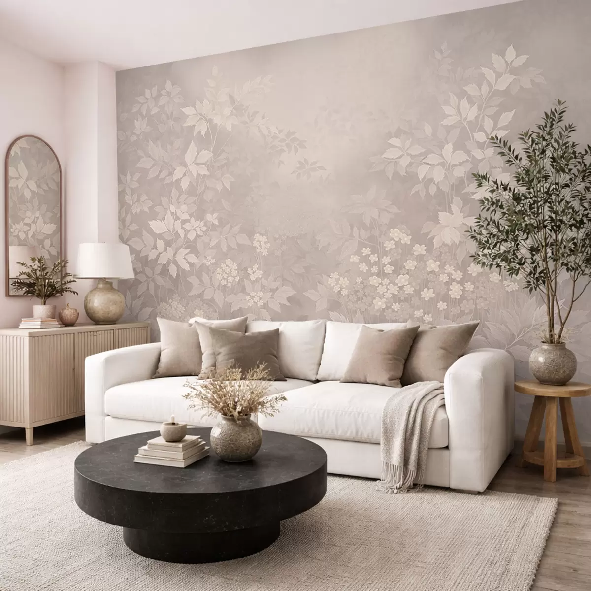 Fotomurales Adorno botánico ligero con hojas y pequeñas flores. Nr. w05115
