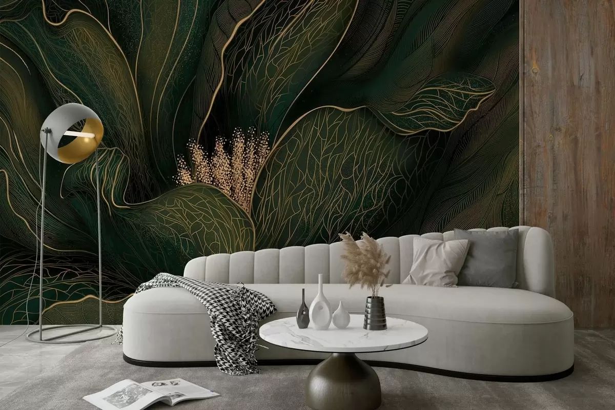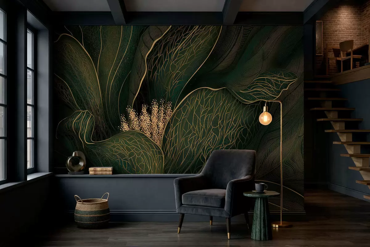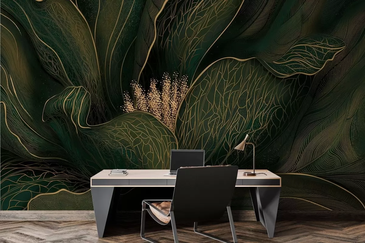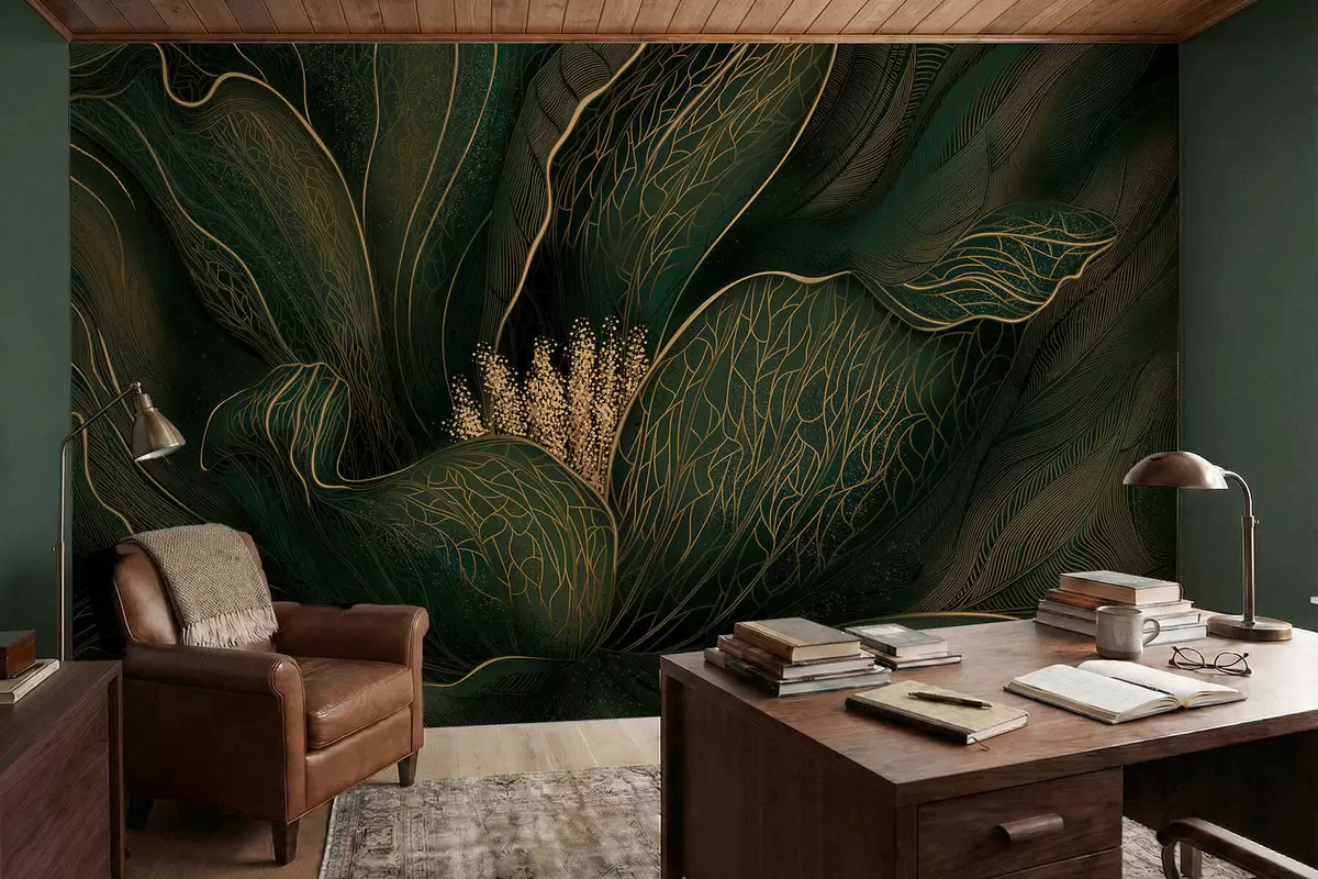 Fotomurales Flor abstracta de color verde oscuro con detalles de líneas finas Nr. w05119v1
