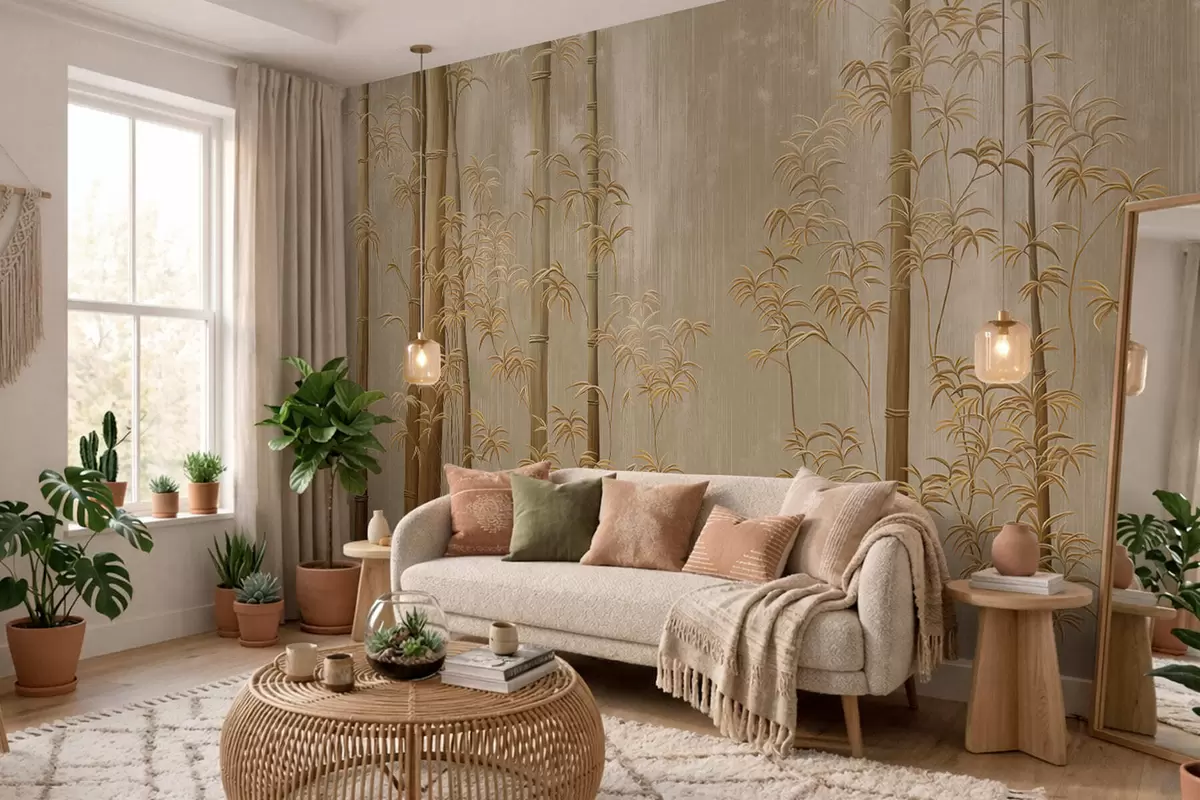 Fotomurales Bambú beige de tallos finos Nr. w05120v2