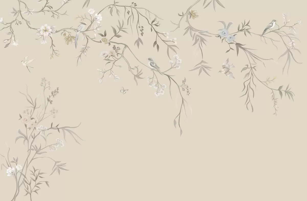 Fotomurales Flores y pájaros ligeros sobre un fondo pastel. Nr. w05127v2