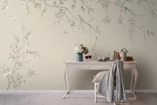 Se puede limpiar suavemente con una esponja suave. Los murales de pared con recubrimiento de barniz pueden limpiarse con agua.