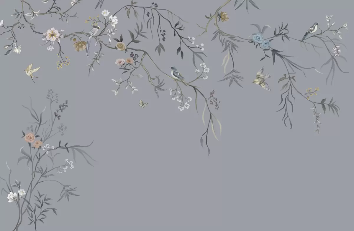 Fotomurales Ramas florales con pájaros sobre fondo verdoso Nr. w05127v5