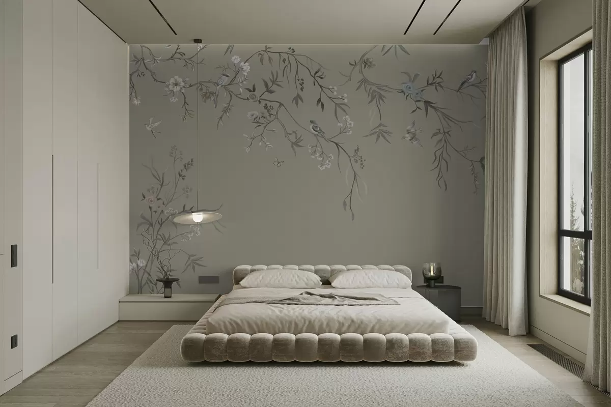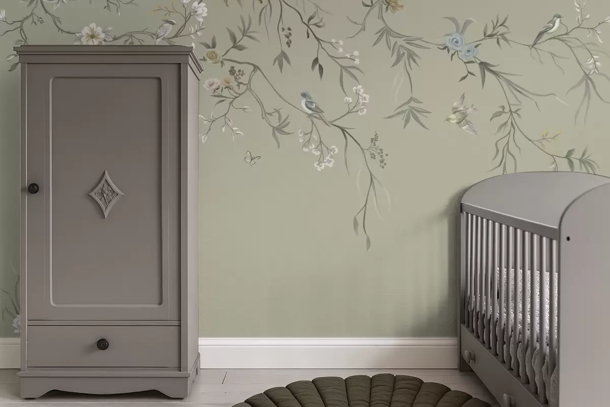Fotomurales Diseño floral con pájaros sobre fondo fresco Nr. w05127v6
