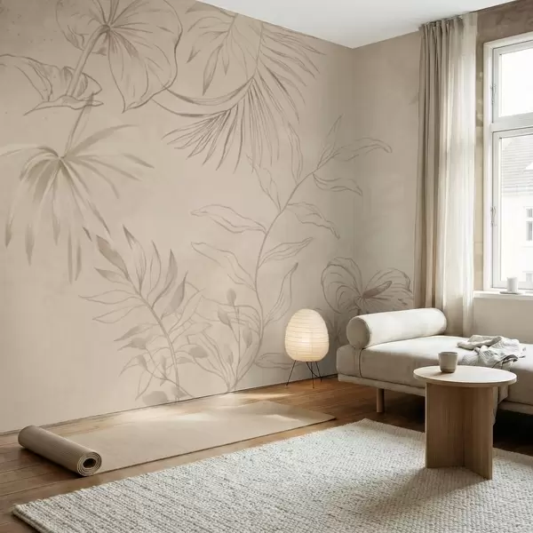 Fotomurales Plantas lineales sobre fondo beige texturizado Nr. w05128