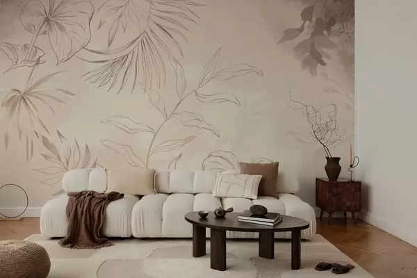 Fotomurales Plantas lineales sobre fondo beige texturizado Nr. w05128