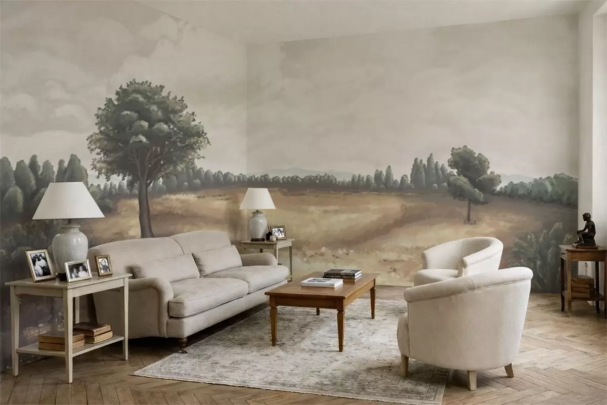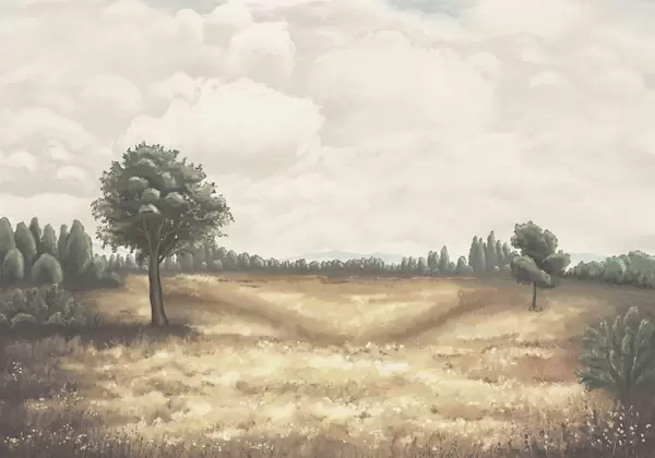 Fotomurales Paisaje pintado con árboles y campo abierto Nr. w05131
