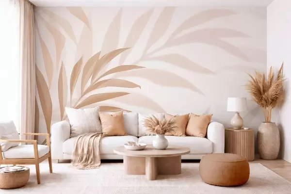 murales de pared Grandes hojas de palmera curvadas en tonos beige y marrón. w05211