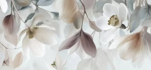 Fotomurales una delicada composición de flores y hojas en tonos pastel Nr. w05240