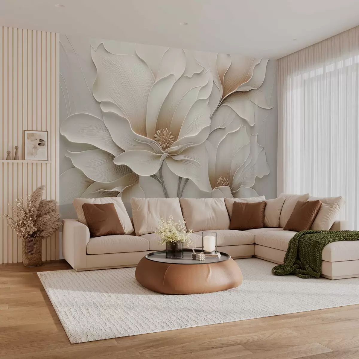 Fotomurales Primer plano de relieve con flores beige en relieve Nr. w05269