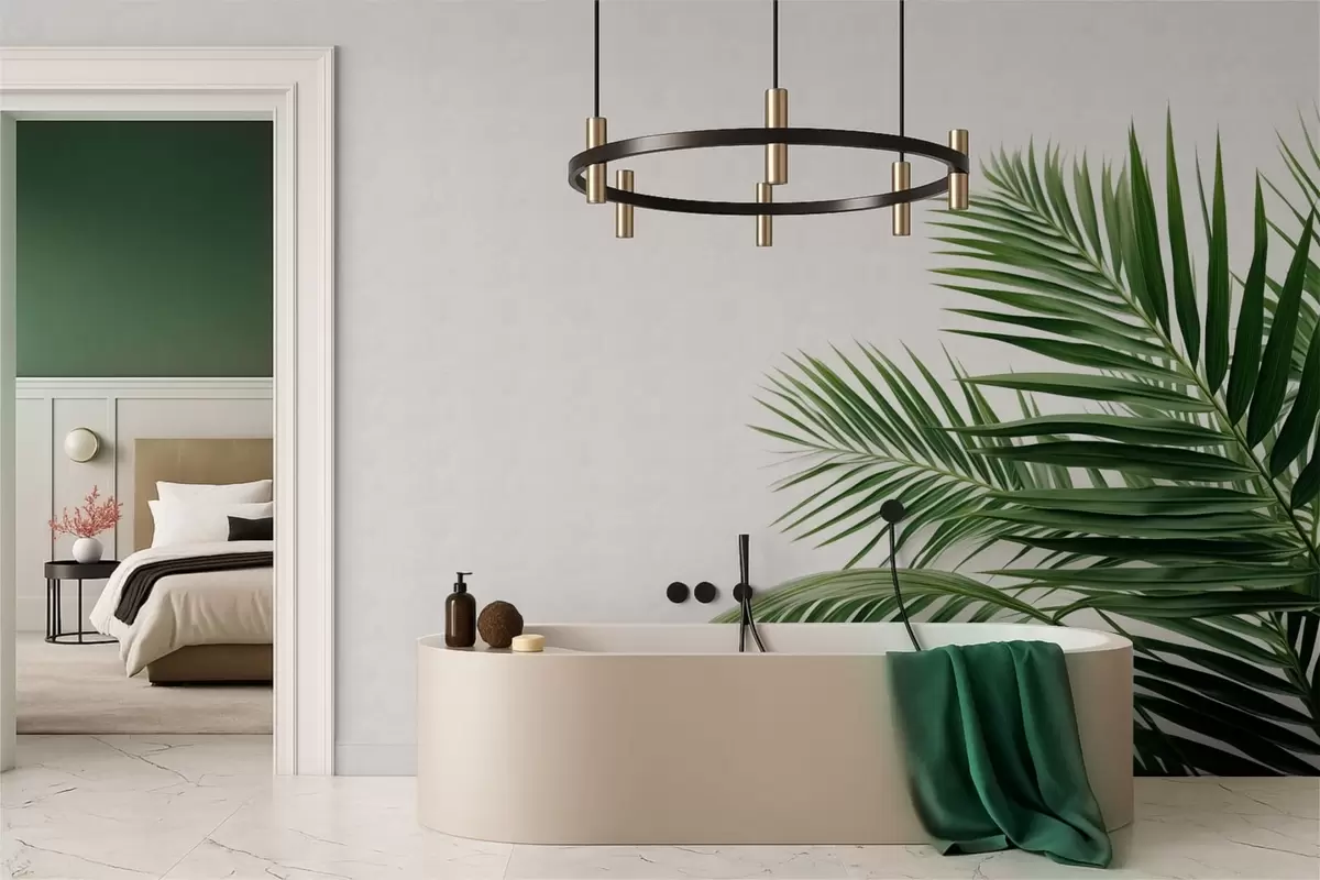 Fotomurales Hojas de palmera verdes sobre un fondo claro Nr. w05391