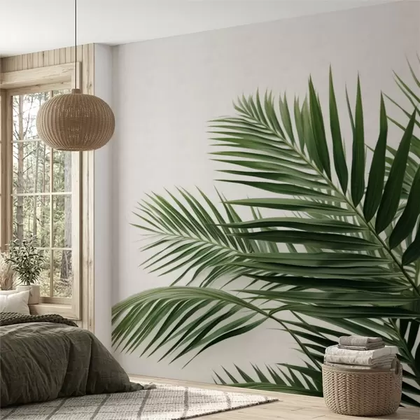 Fotomurales Hojas de palmera verdes sobre un fondo claro Nr. w05391