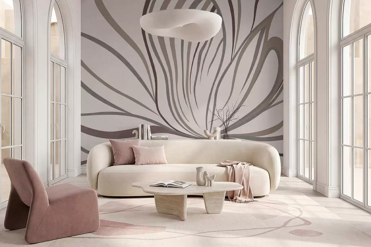 Fotomurales Flor abstracta con líneas en tonos grises y rosas Nr. w05392