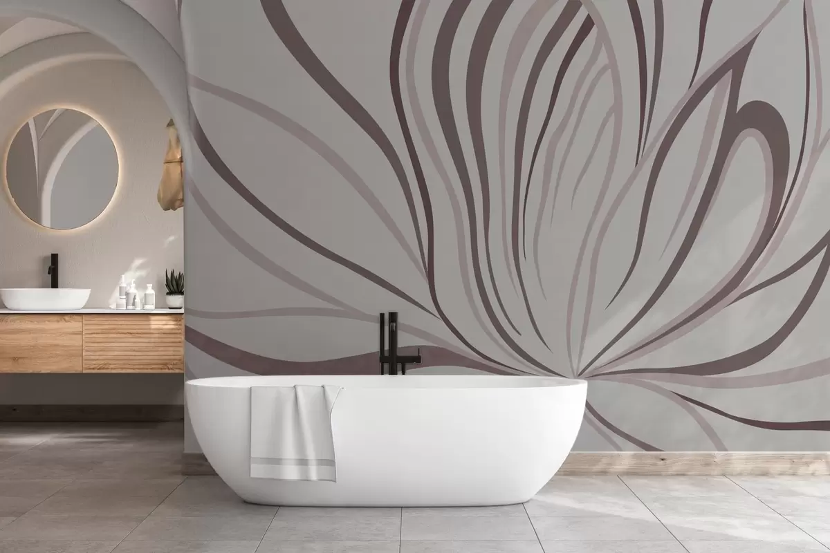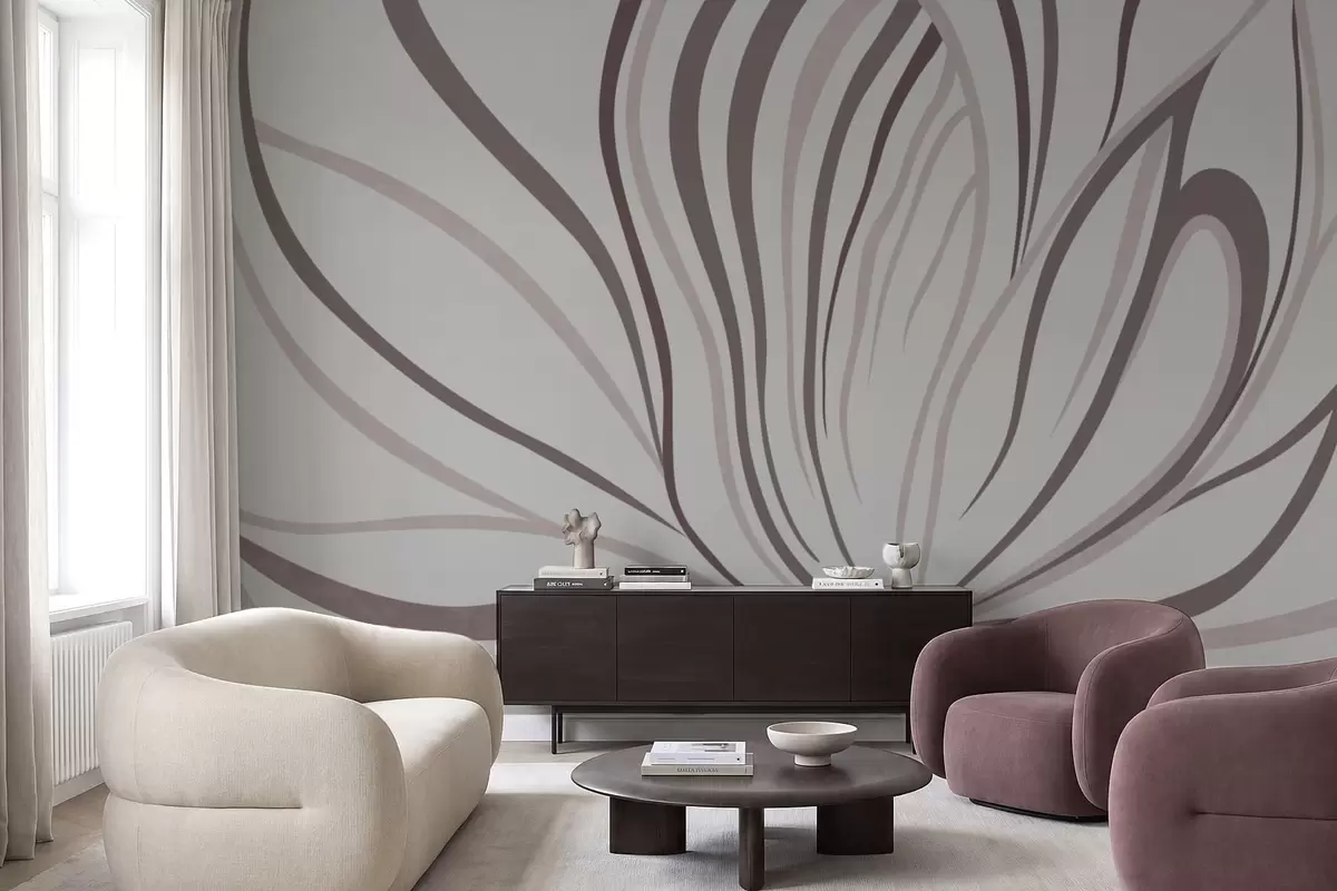 Fotomurales Flor estilizada con líneas suaves en tonos rosa y beige Nr. w05392v1