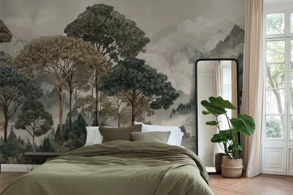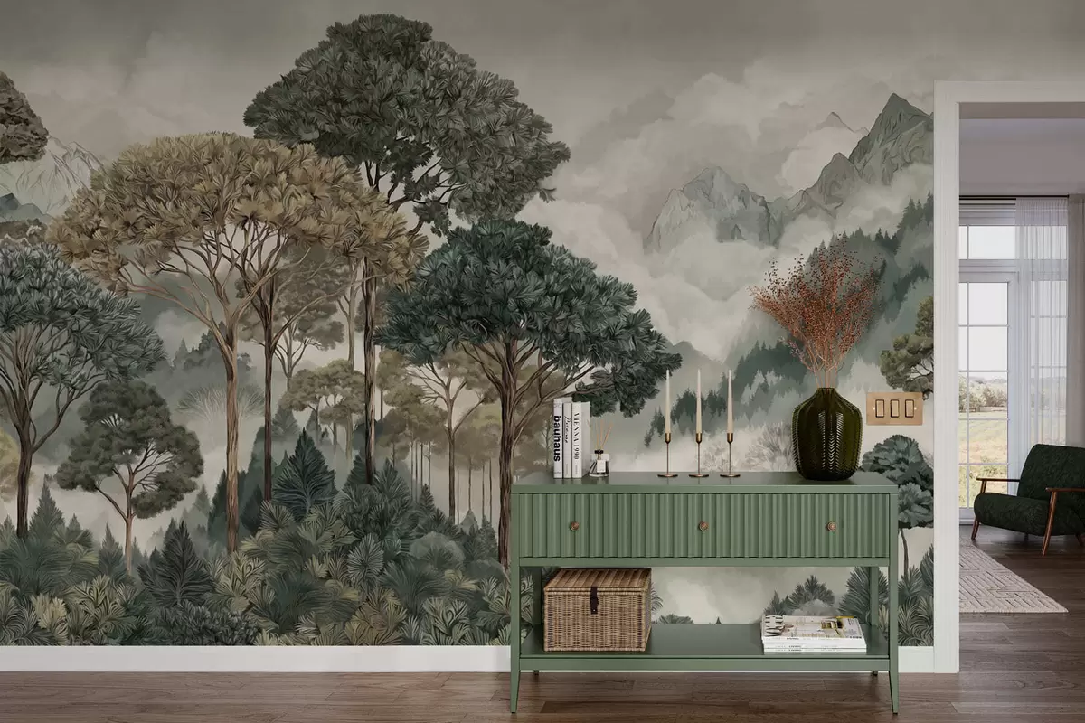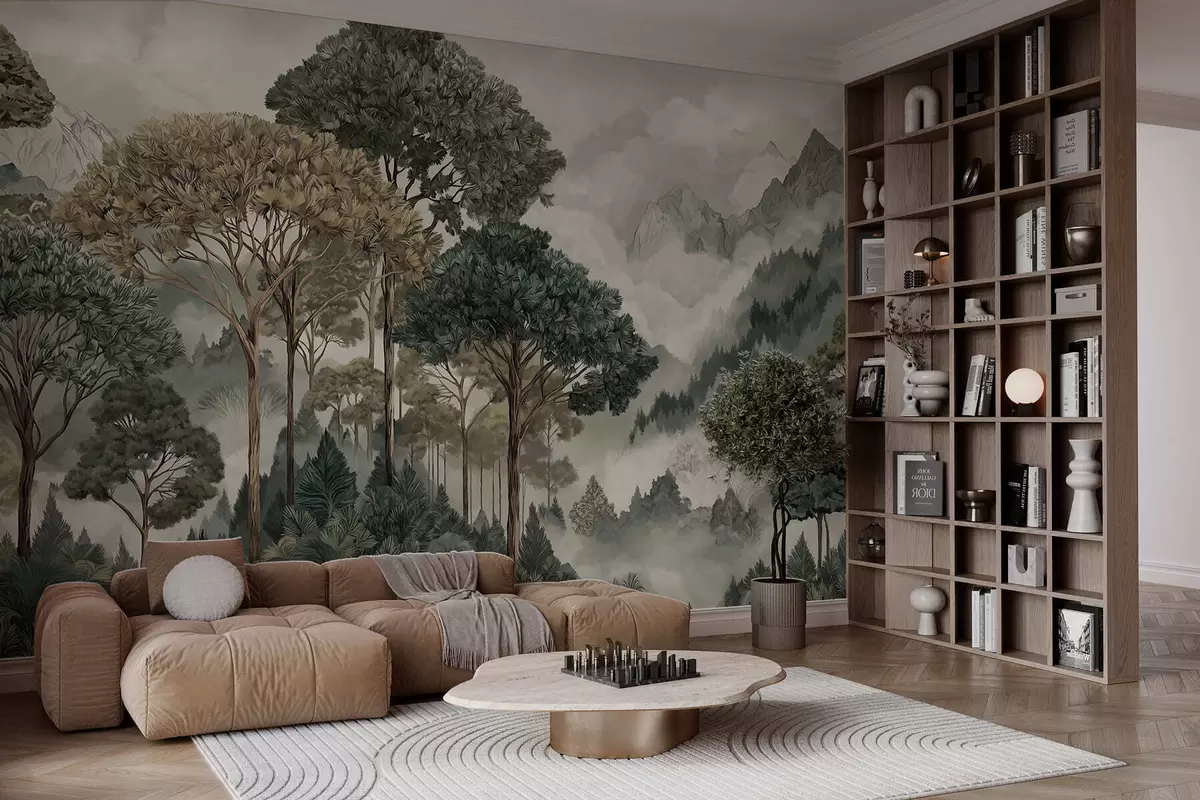 Fotomurales Paisaje montañoso con bosque en tonos suaves Nr. w05410v1