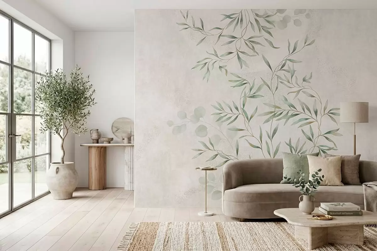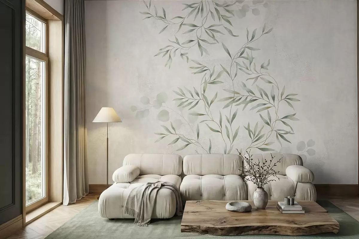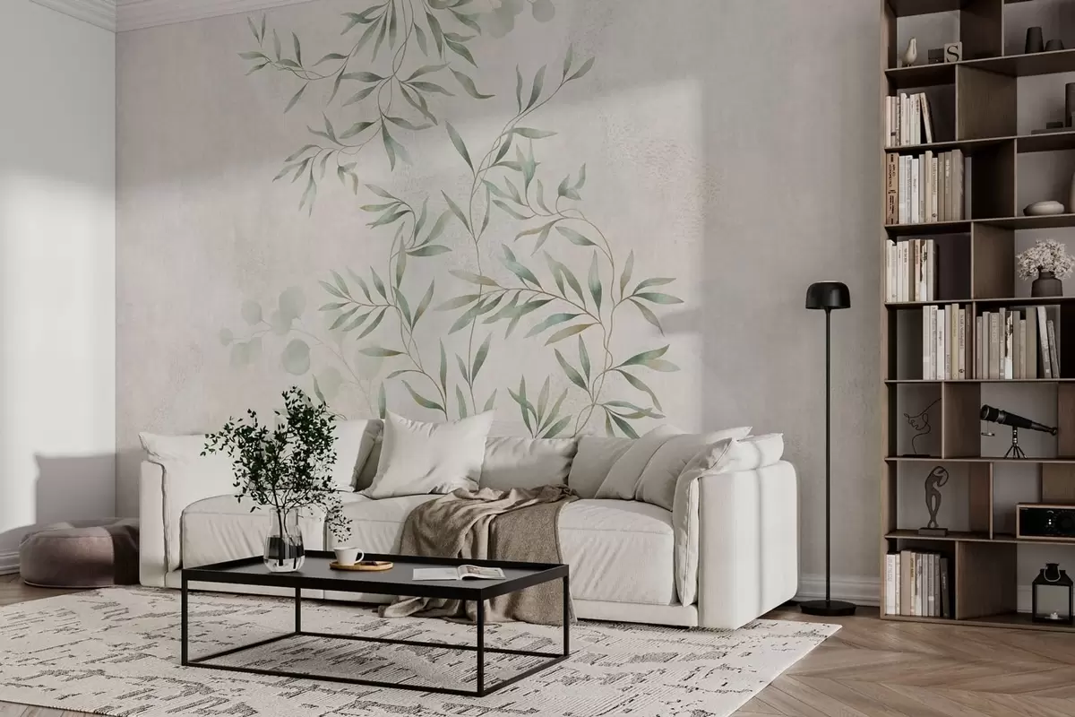 Fotomurales Delikado estampado botánico con ramas finas sobre un fondo claro Nr. w05424