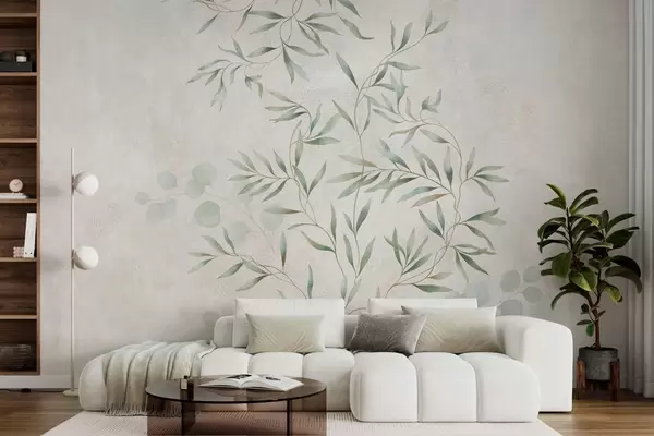Fotomurales Delikado estampado botánico con ramas finas sobre un fondo claro Nr. w05424