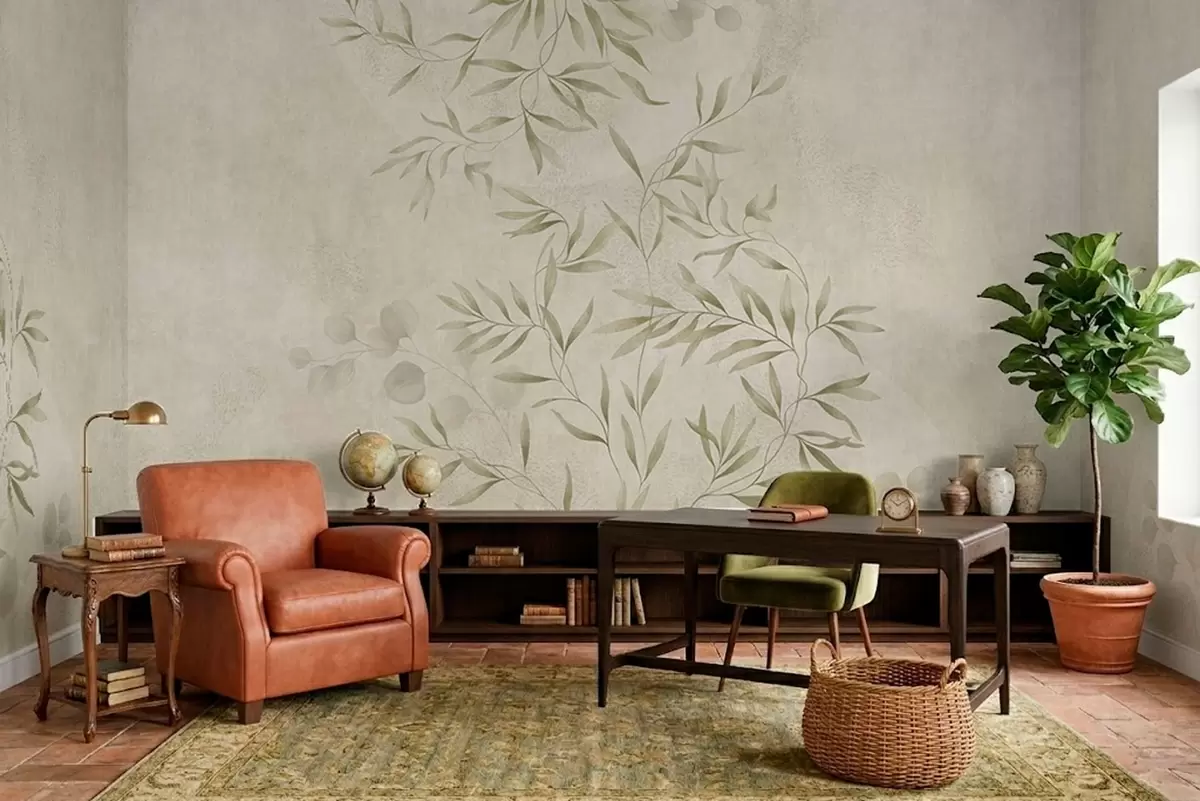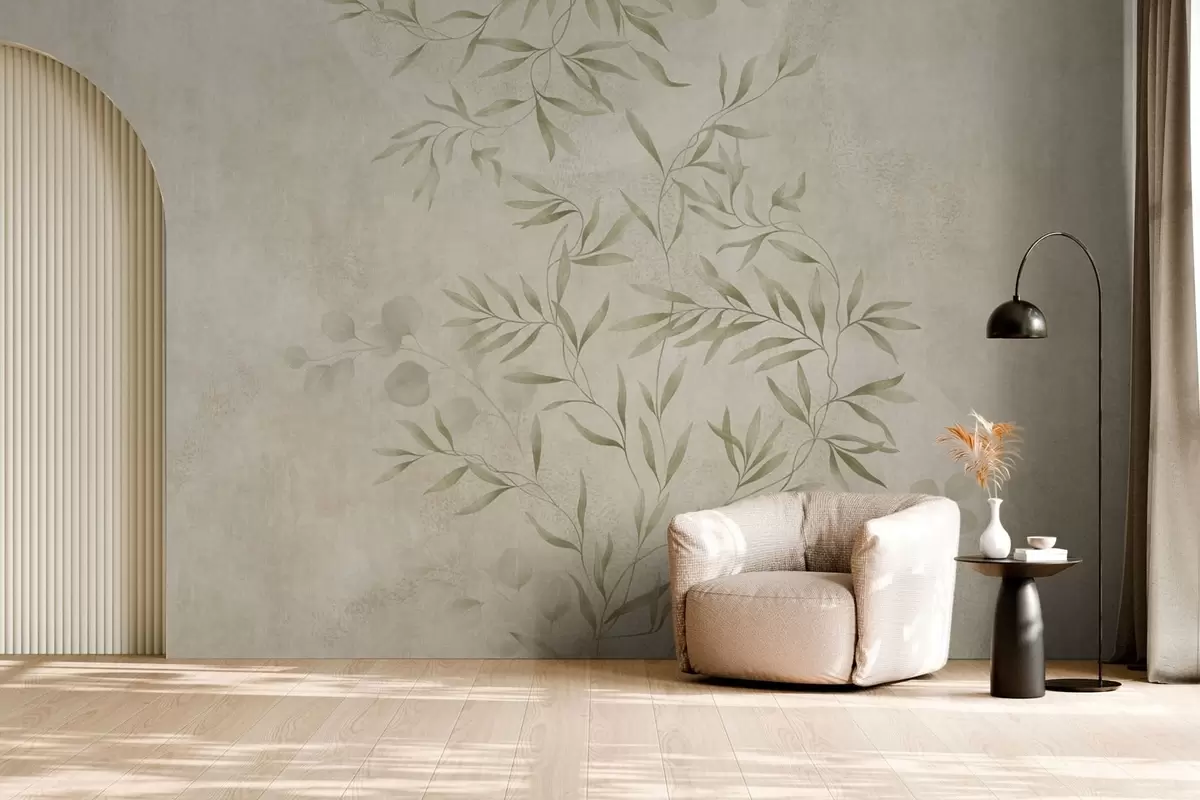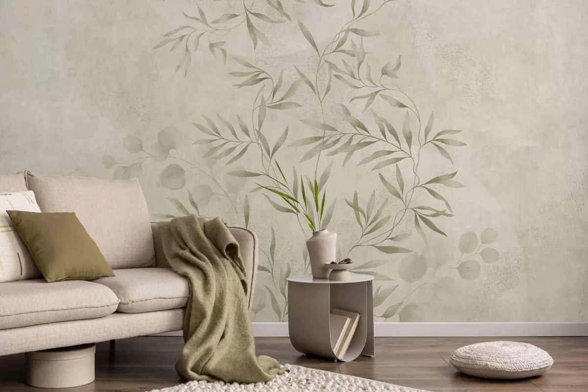Fotomurales Motivo botánico en tonos verde claro sobre un fondo texturizado Nr. w05424v1