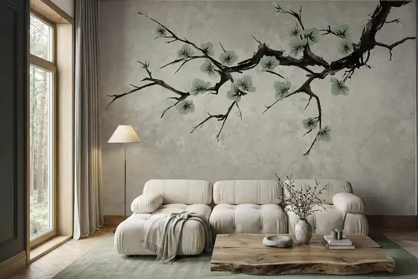 Fotomurales Rama con flores verdes en tonos suaves Nr. w05425v2