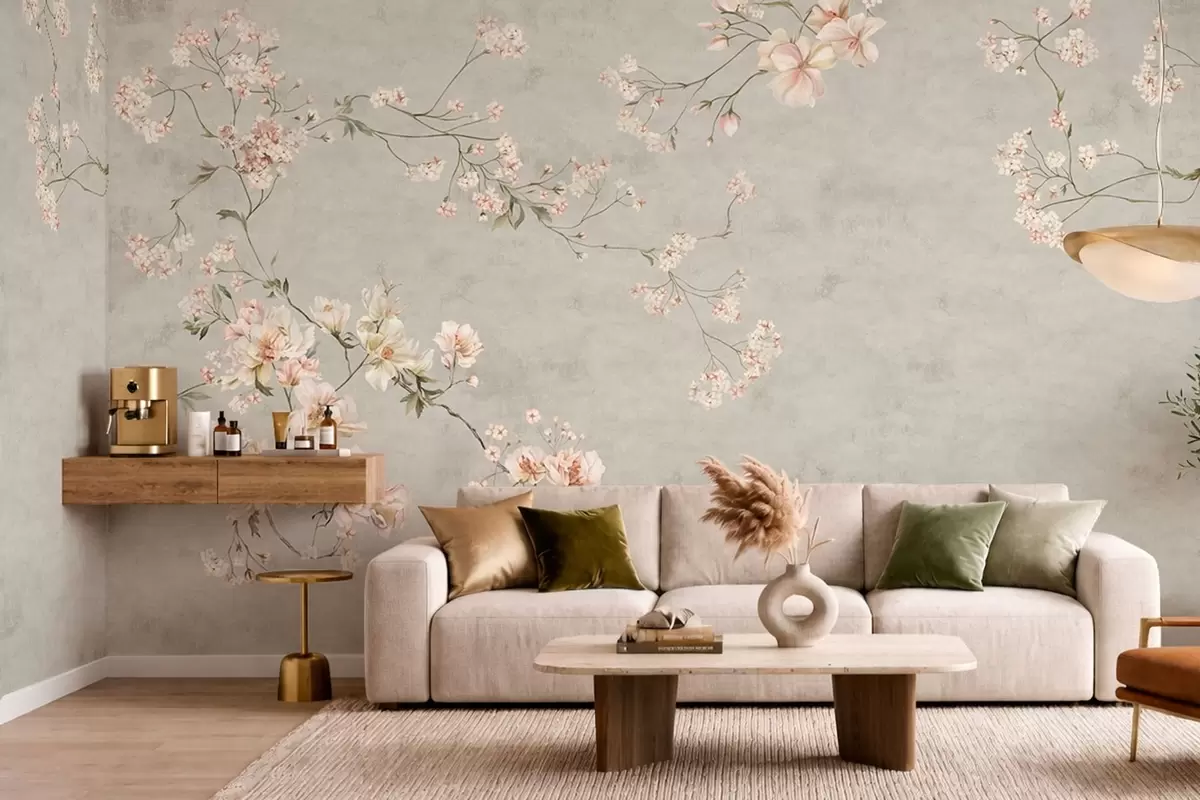 Fotomurales Ramas florales de estilo chinoiserie sobre fondo gris Nr. w05427v1