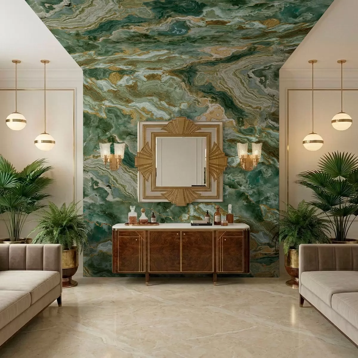 Fotomurales Textura de ónix verde con vetas fluidas en capas Nr. w05429