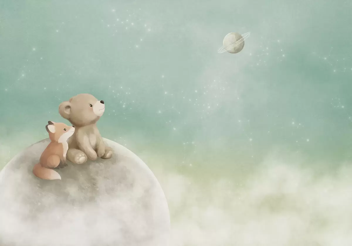 Fotomurales Ilustración al pastel de un oso y un zorro bajo un cielo verde Nr. w05431v1