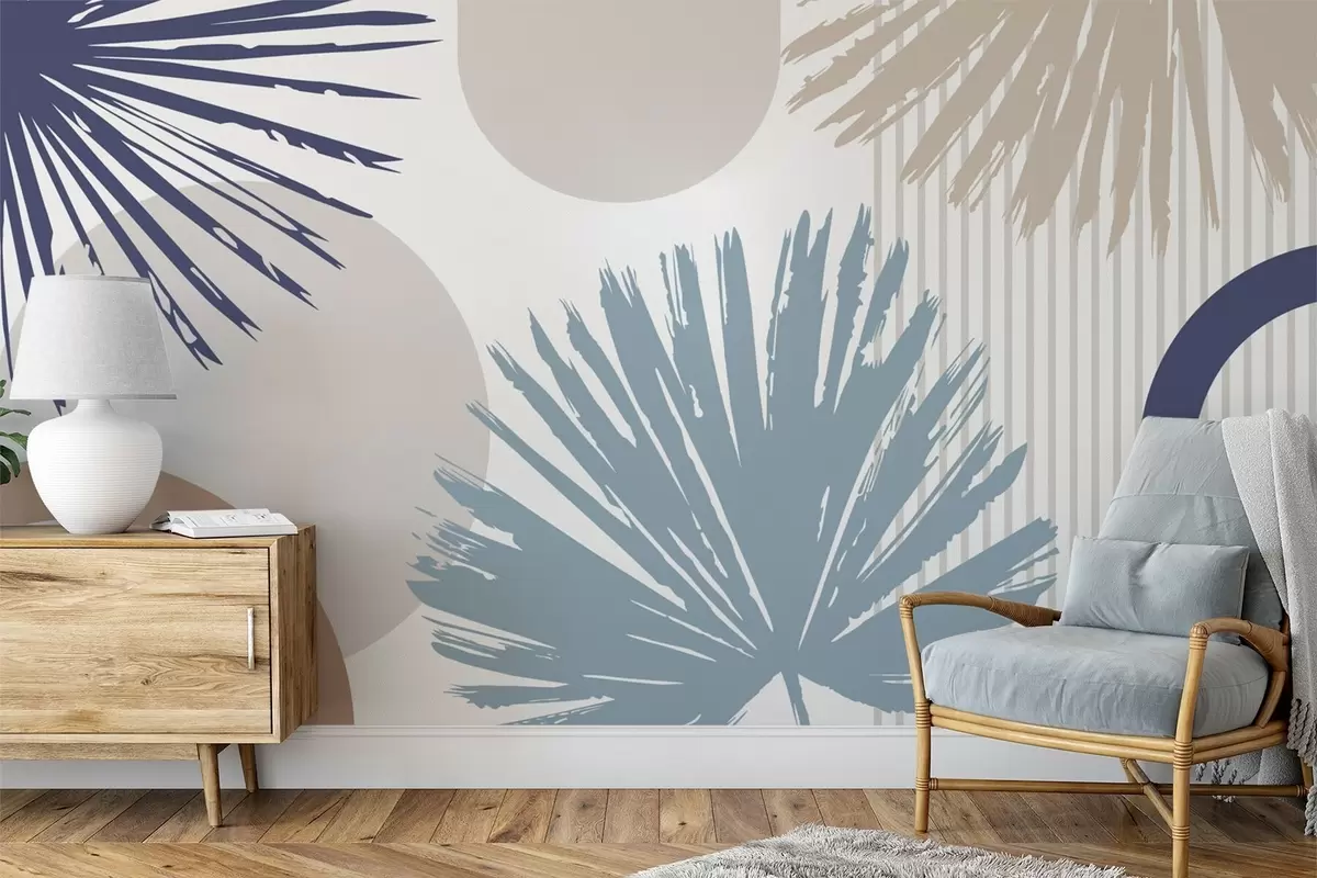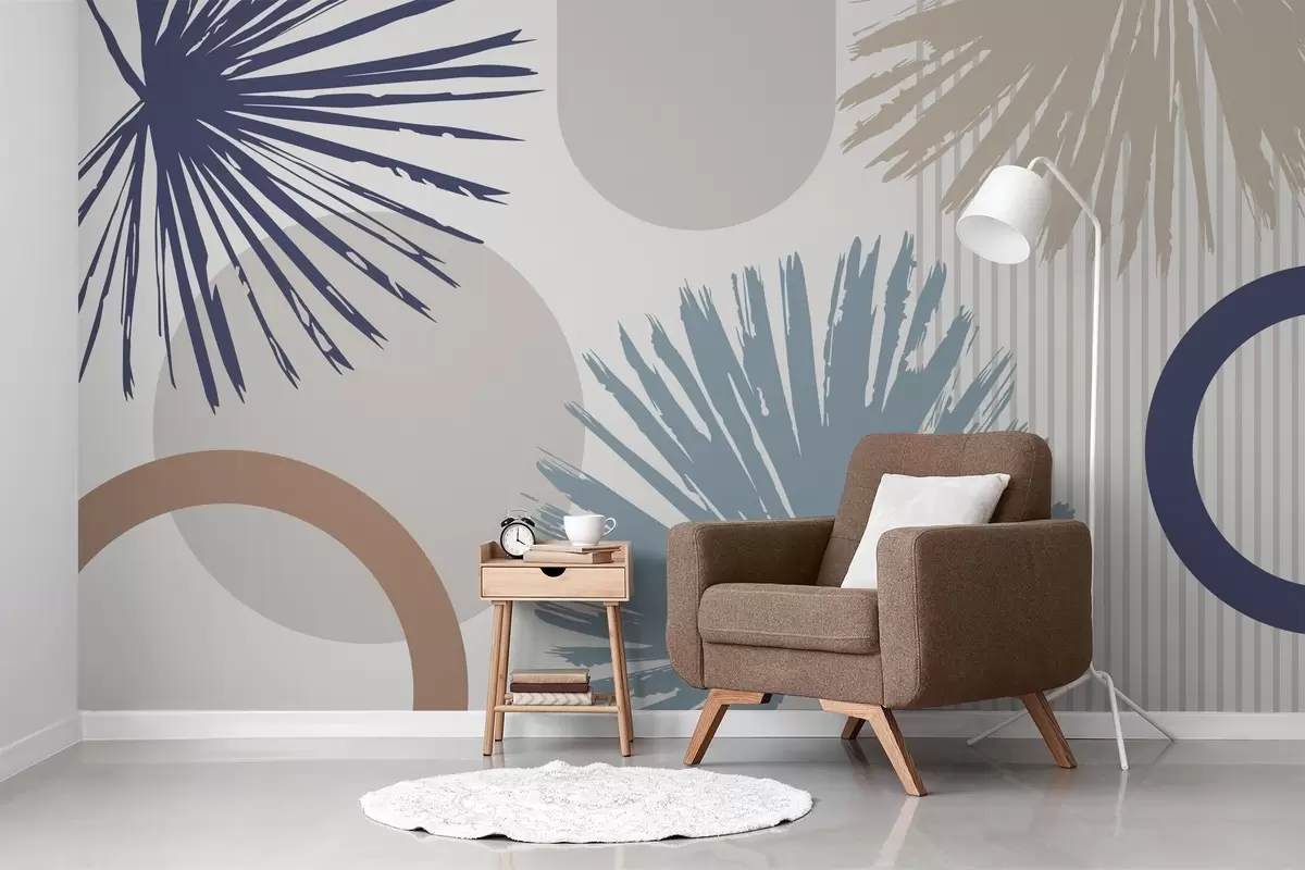 Fotomurales Abstracción con siluetas vegetales y geométricas Nr. w05505v1