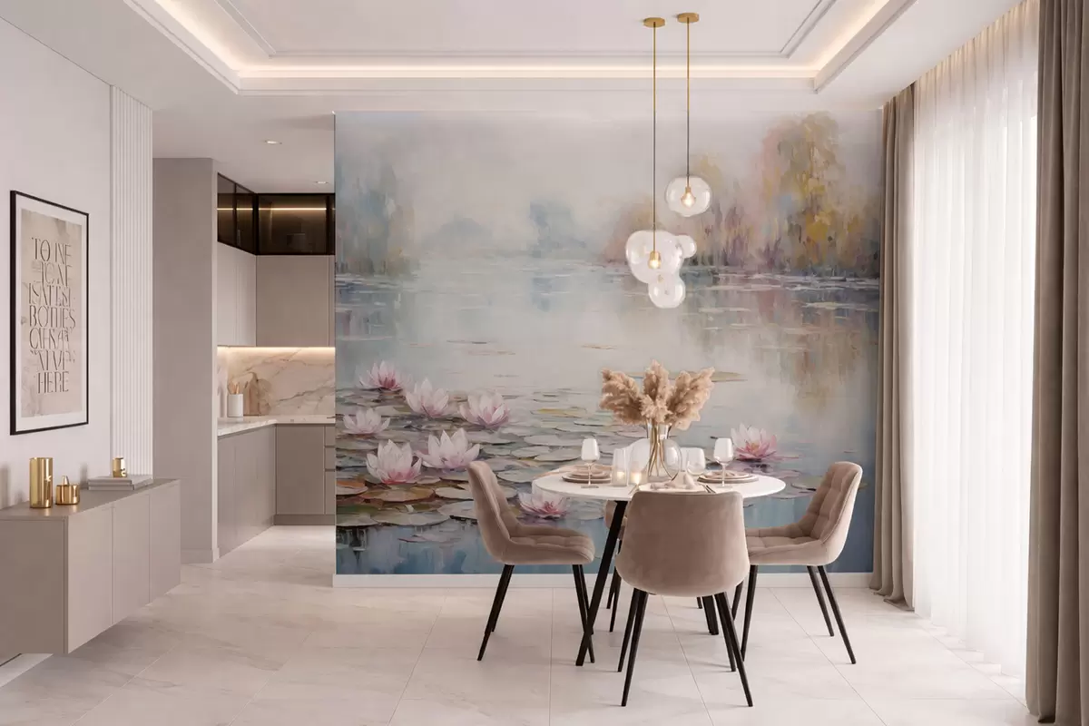 Fotomurales Lago impresionista con nenúfares y luz tenue Nr. w05515