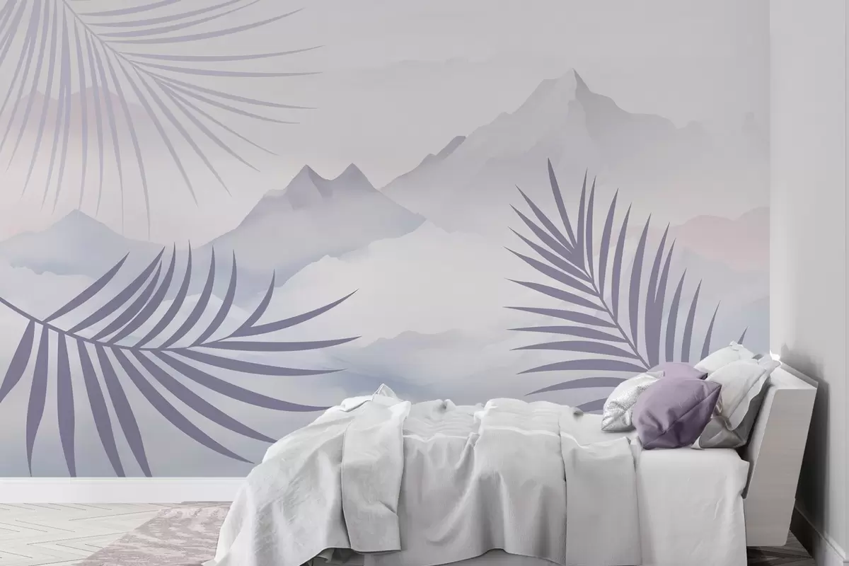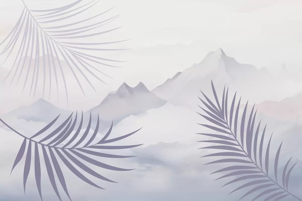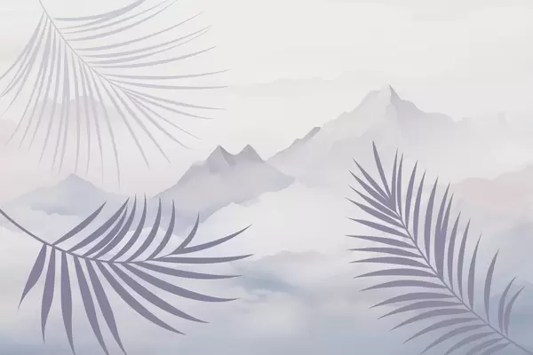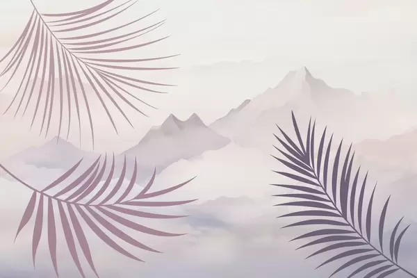 Fotomurales Hojas de palmera con las montañas de fondo Nr. w05548