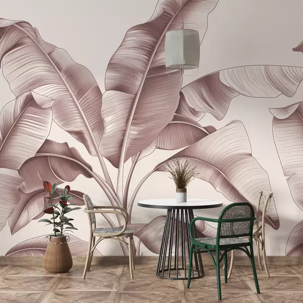 Fotomurales grandes hojas de plátano dibujadas en rosa pastel Nr. w07877v1
