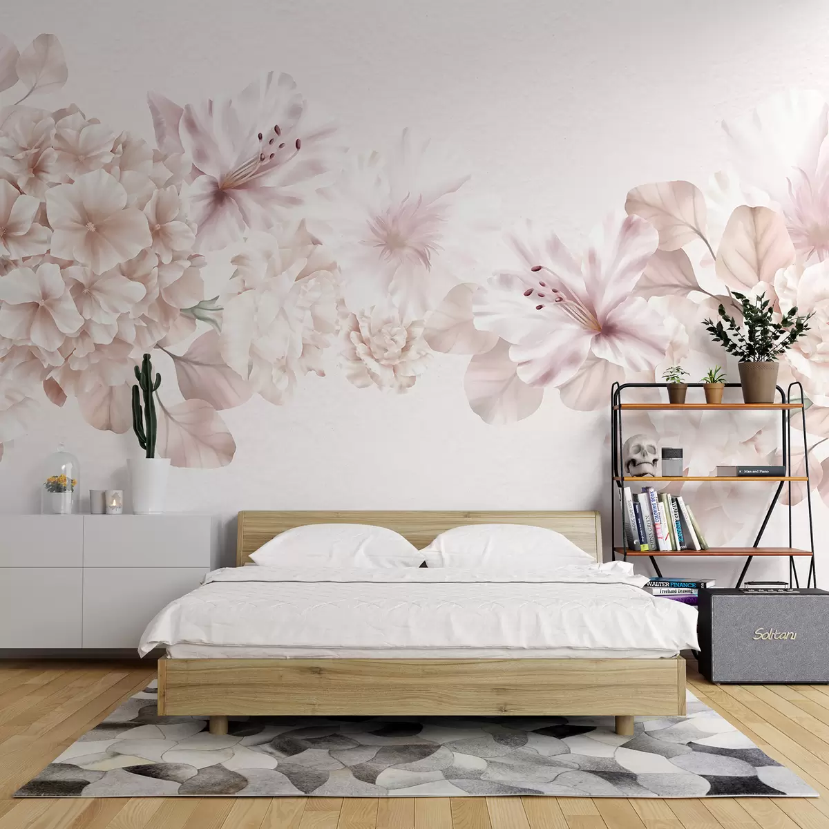 Fotomurales Arreglo floral rosa suave y blanco, con delicados pétalos y flores sobre un fondo claro Nr. w07923